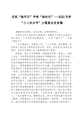 庆祝“她节日”+呼唤“她时代”+---XXXX同学“三八妇女节”主题晨会发言稿.docx
