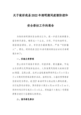 关于做好我县2022年清明期间疫情防控和安全祭扫工作的通告.docx