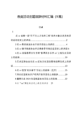 (9篇)各类活动主题致辞材料汇编.docx
