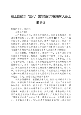 在全县纪念“三八”国际妇女节暨表彰大会上的讲话.docx