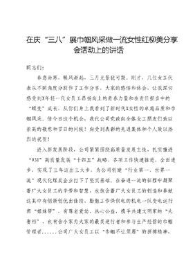 在庆“三八”展巾帼风采做一流女性红柳美分享会活动上的讲话.docx