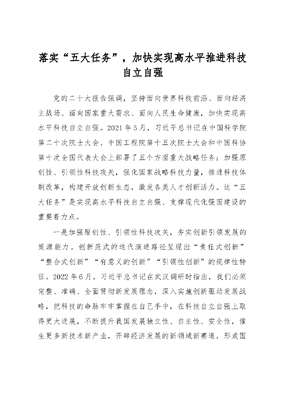 心得体会:落实“五大任务”,加快实现高水平推进科技自立自强.docx