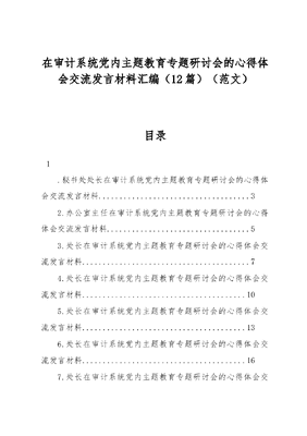 (12篇)在审计系统党内主题教育专题研讨会的心得体会交流发言材料汇编(范文).docx