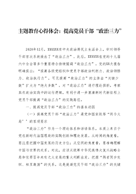 主题教育心得体会:提高党员干部“政治三力”.docx