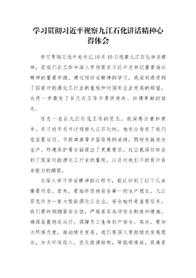 学习贯彻习近平视察九江石化讲话精神心得体会.docx