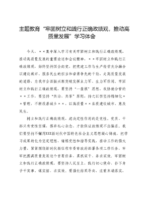 主题教育“牢固树立和践行正确政绩观,推动 高质量发展”学习体会.docx