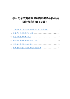 (6篇)学习纪念辛亥革命110周年讲话心得体会研讨发言汇编.docx