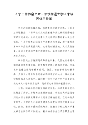 人才工作体会文章-加快推进大学人才培养体系改革.docx