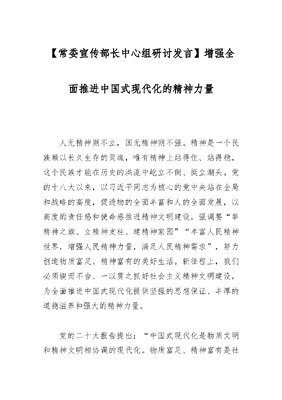 【常委宣传部长中心组研讨发言】增强全面推进中国式现代化的精神力量.docx