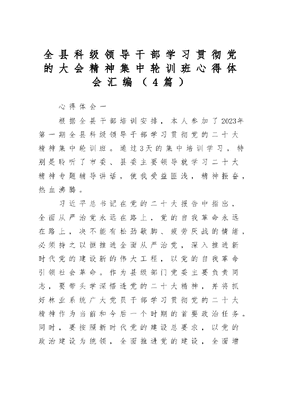 (4篇)全县科级领导干部学习贯彻党的大会精神集中轮训班心得体会汇编.docx