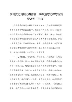 学习党纪党规心得体会:讲政治守纪律守规矩要做到“三心”.docx