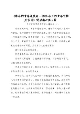 奋斗的青春最美丽—2020年五四青年节特别节目观后感心得5篇.docx