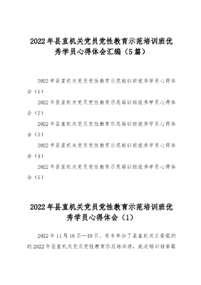 (5篇)2022年县直机关党员党性教育示范培训班优秀学员心得体会汇编.docx