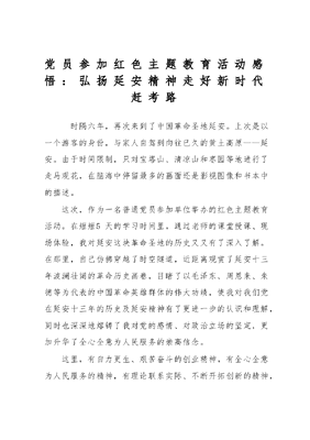 党员参加红色主题教育活动感悟:弘扬延安精神+走好新时代赶考路.doc