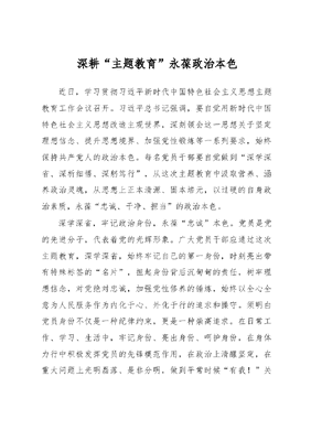 深耕“主题教育”+永葆政治本色(主题教育心得体会).docx