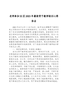 老师参加XX区2023年暑期骨干教师培训心得体会.docx