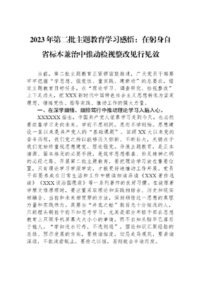2023年第二批主题教育学习感悟:在躬身自省、标本兼治中推动检视整改见行见效.docx