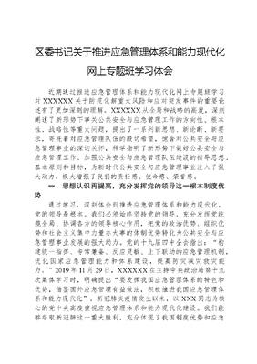 区委书记关于推进应急管理体系和能力现代化网上专题班学习体会.docx