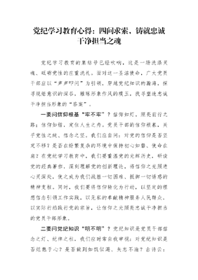 党纪学习教育心得:四问求索,铸就忠诚干净担当之魂.docx