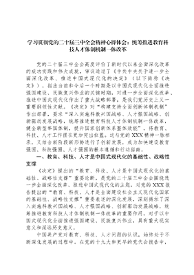学习贯彻党的二十届三中全会精神心得体会:统筹推进教育科技人才体制机制一体改革.docx
