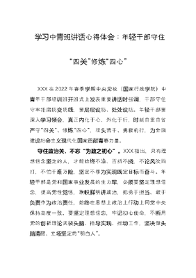 学习中青班讲话心得体会:年轻干部守住“四关”修炼“四心”.docx
