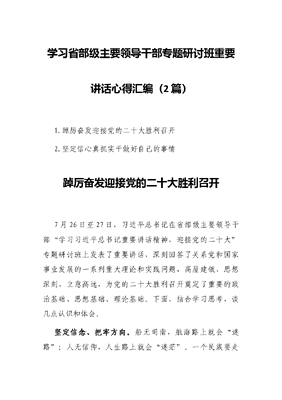 (2篇)学习省部级主要领导干部专题研讨班重要讲话心得汇编.docx