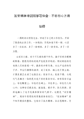 延安精神培训班学习体会:不忘初心 方得始终.docx