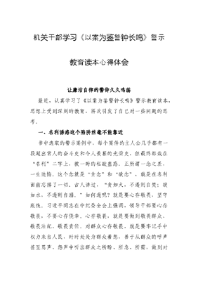 机关干部学习《以案为鉴 警钟长鸣》警示教育读本心得体会.docx