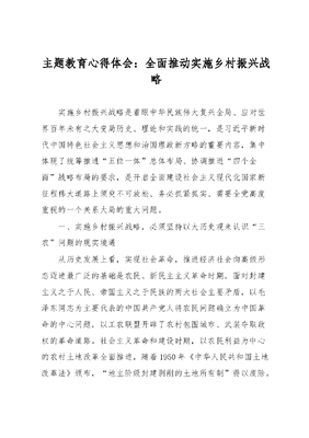 主题教育心得体会:全面推动实施乡村振兴战略.docx