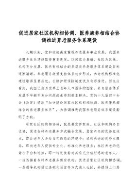促进居家社区机构相协调、医养康养相结合协调推进养老服务体系建设.docx