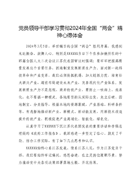 党员领导干部学习贯彻2024年全国“两会”精神心得体会.docx