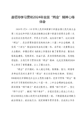 县领导学习贯彻2024年全国“两会”精神心得体会.docx