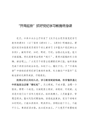 心得体会:“开局起势”抓好党纪学习教育终身课.docx