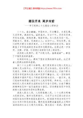二十大报告心得:继往开来 阔步向前.docx