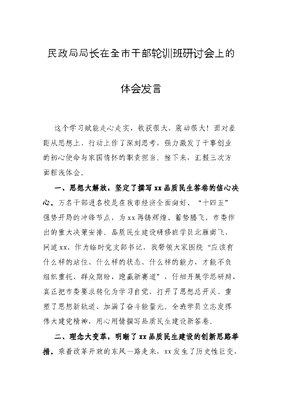 民政局局长在全市干部轮训班研讨会上的体会发言.docx
