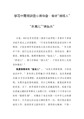 学习中青班讲话心得体会:做好“接班人”“弄潮儿”“排头兵”.docx