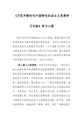 《习近平新时代中国特色社会主义思想学习问答》学习心得.docx