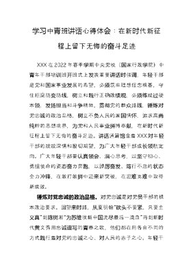 学习中青班讲话心得体会:在新时代新征程上留下无悔的奋斗足迹.docx