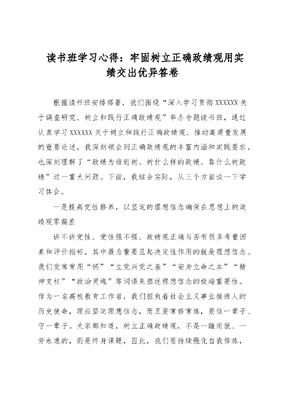 读书班学习心得:牢固树立正确政绩观用实绩交出优异答卷.docx