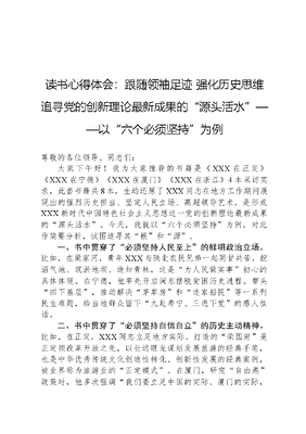 读书心得体会:跟随领袖足迹+强化历史思维追寻党的创新理论最新成果的“源头活水”——以“六个必须坚持”为例.docx