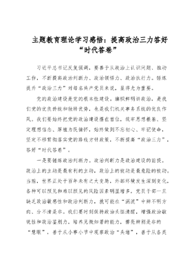 主题教育理论学习感悟:提高政治三力 答好“时代答卷”.docx