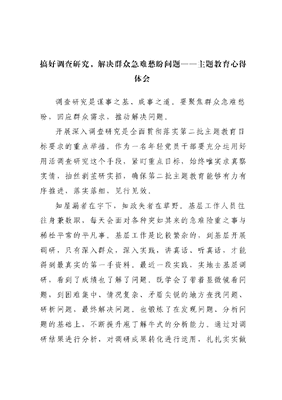 搞好调查研究,解决群众急难愁盼问题——主题教育心得体会.docx