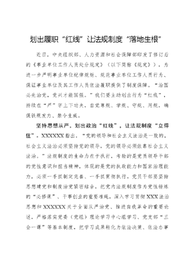 心得体会:划出履职“红线” 让法规制度“落地生根”.docx