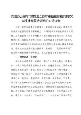 党政办公室学习贯彻2023年主题教育和党的二十大精神专题培训班的心得体会.docx