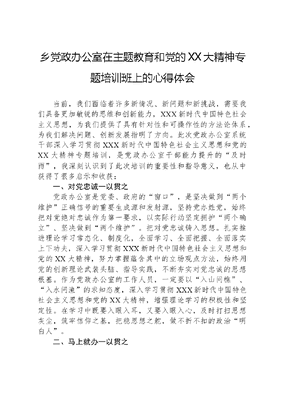乡党政办公室在主题教育和党的二十大精神专题培训班上的心得体会.docx