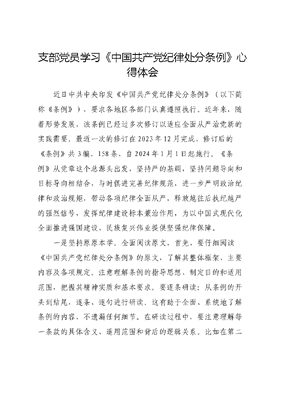 支部党员学习《中国共产党纪律处分条例》心得体会.docx
