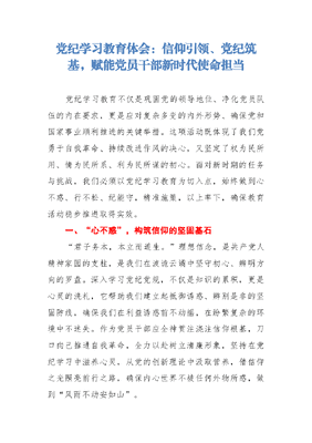 党纪学习教育体会:信仰引领、党纪筑基,赋能党员干部新时代使命担当.docx