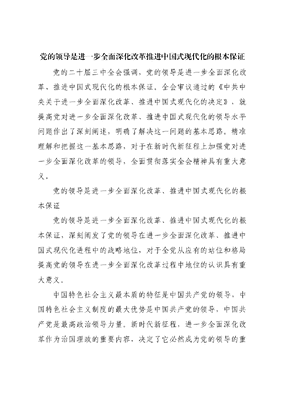 党的领导是进一步全面深化改革推进中国式现代化的根本保证.docx