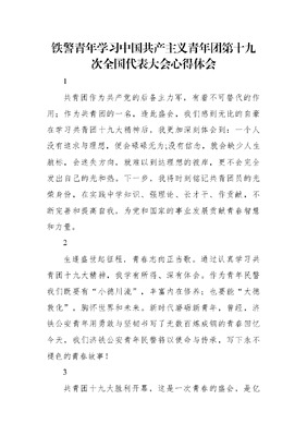铁警青年学习中国共产主义青年团第十九次全国代表大会心得体会.docx