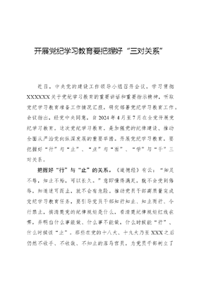 心得体会:开展党纪学习教育要把握好“三对关系”.docx